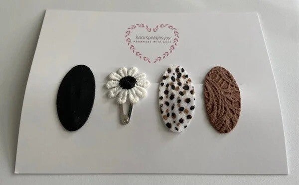 De set bestaat uit klikklak- en alligator haarspeldjes van 3 cm.